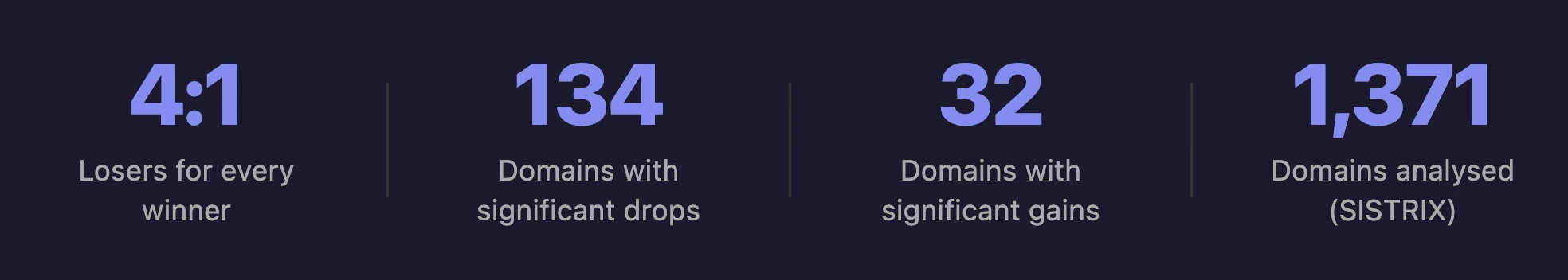 The March 2026 core update rolled out over 12 days, completing on April 8th. It was Google's first major ranking update of 2026, and independent analysis by SISTRIX in the German market puts its scale into sharp relief.